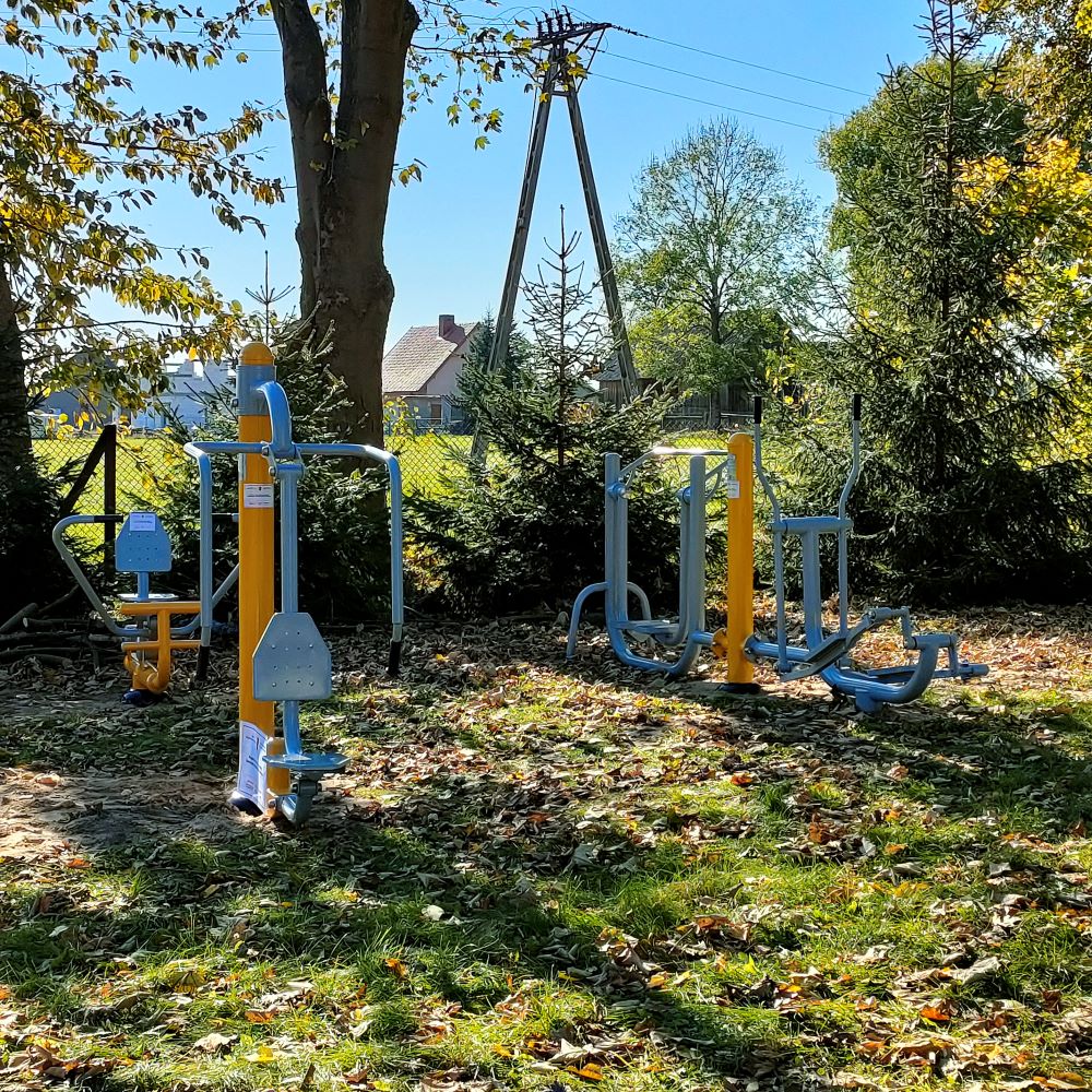 dostępne siłownie plenerowe. Siłownie powstały z dofinansowaniem w ramach realizowanego przez Województwo Łódzkie projektu „Sołectwo na plus”.