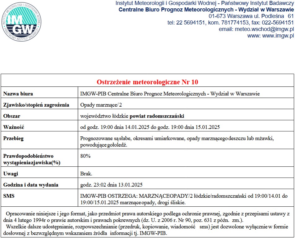 OSTRZEŻENIE METEOROLOGICZNE NR 10