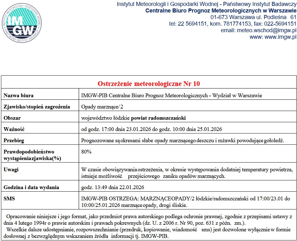 OSTRZEŻENIE METEOROLOGICZNE NR 10